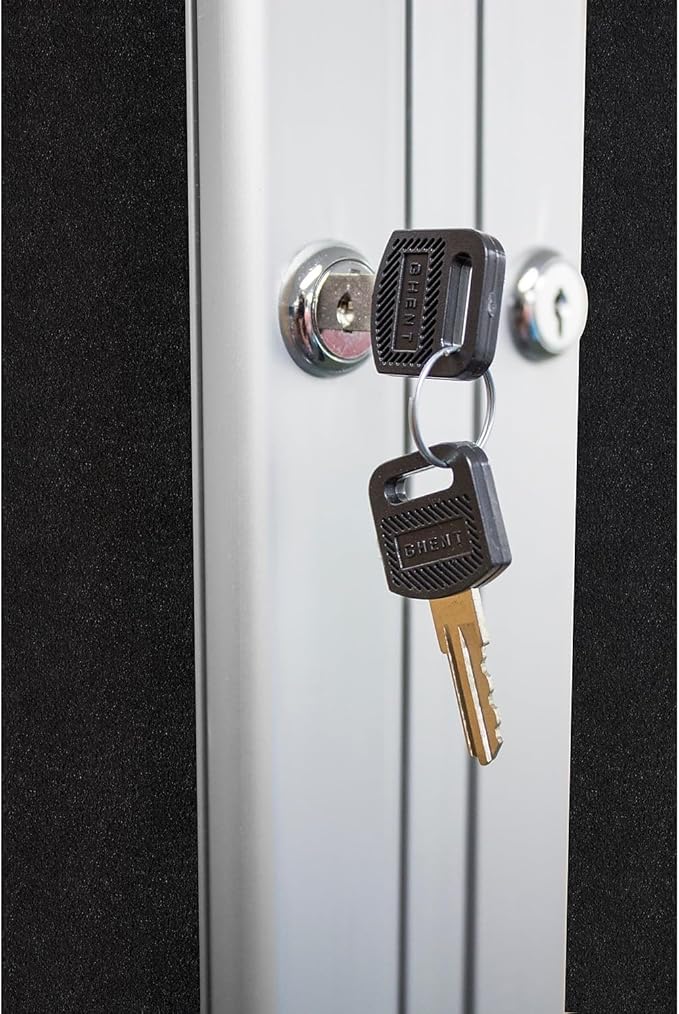 • Doors feature full-length hinges, shatter-resistant acrylic panels, flush mount locks and keys for added security.