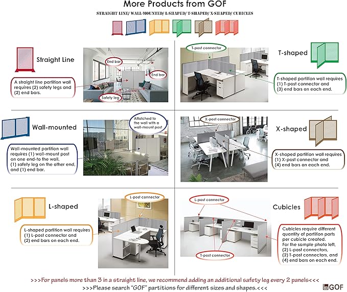 GOF Freestanding Office Partition, Large Fabric Room Divider Panel, 72" W x 48" H