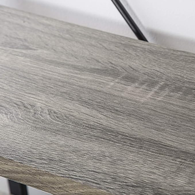 HSH 5-Shelf Vintage Industrial Rustic Bookshelf, 5 Tier Wood and Metal Bookcase, Open Etagere Book Shelf, Farmhouse Wooden Bookshelves, Light Grey Oak