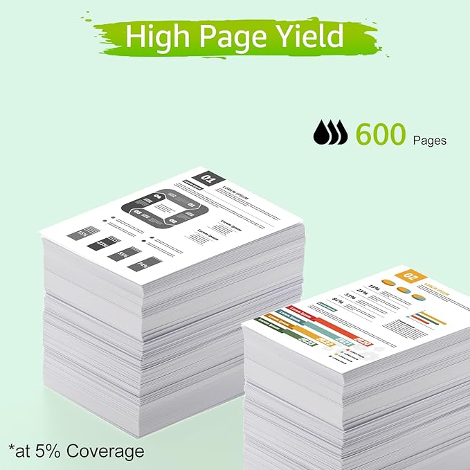 - High-Capacity Printing: Black cartridge yields ~600 pages (5% coverage, A4/Letter). Achieve 40%+ savings compared to original HP cartridges