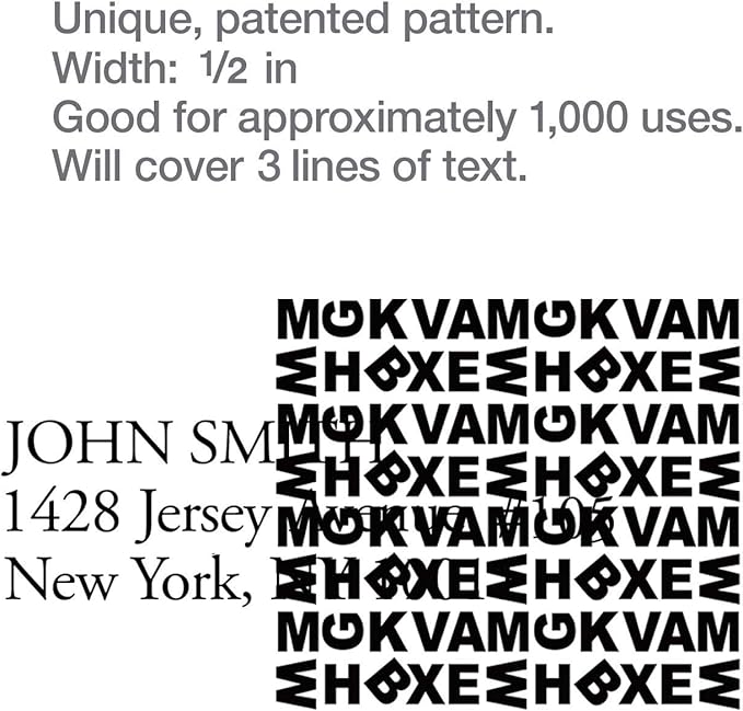 - RAPID AND RELIABLE IDENTITY PROTECTION: Our unique roller pattern and special ink are effective on various paper types and some glossy surfaces. Quick and efficient, the roller ensures lasting concealment of personal data, providing a crucial defense against identity theft.