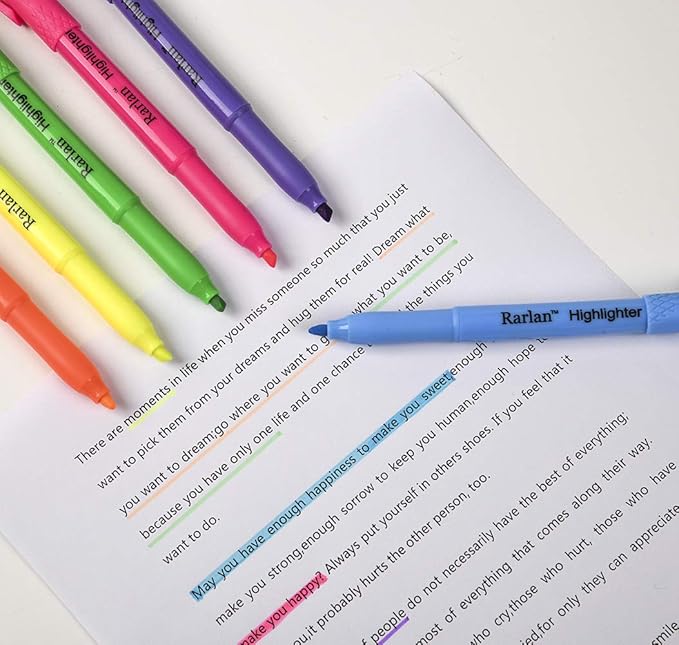 • Narrow chisel tip offers broad highlighting and fine underlining