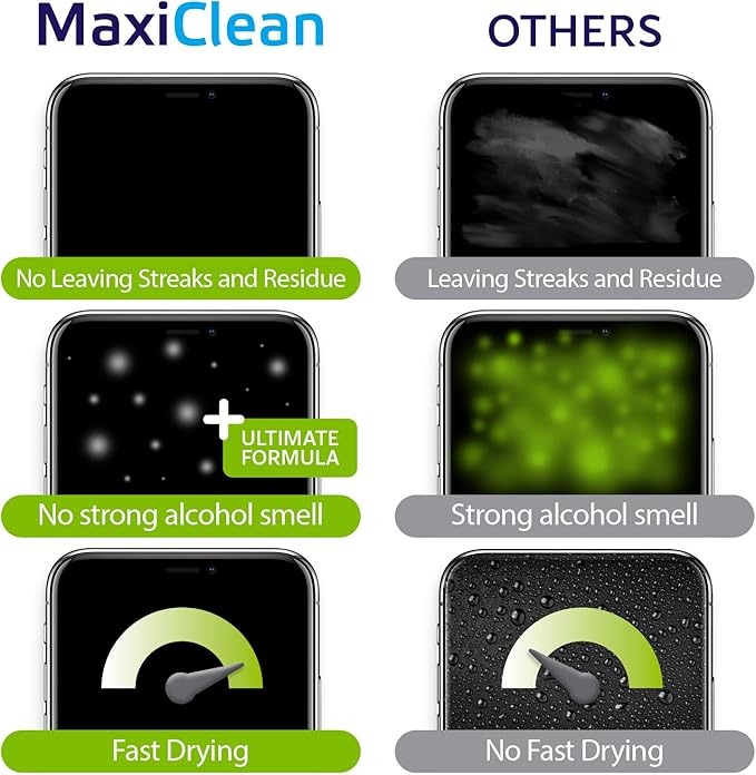 • Eco-Friendly - The innovative formula of MAXI CLEAN phone screen cleaner wipes is not only ammonia-free and without the harsh smell, but also features nonwoven material that is compostable.