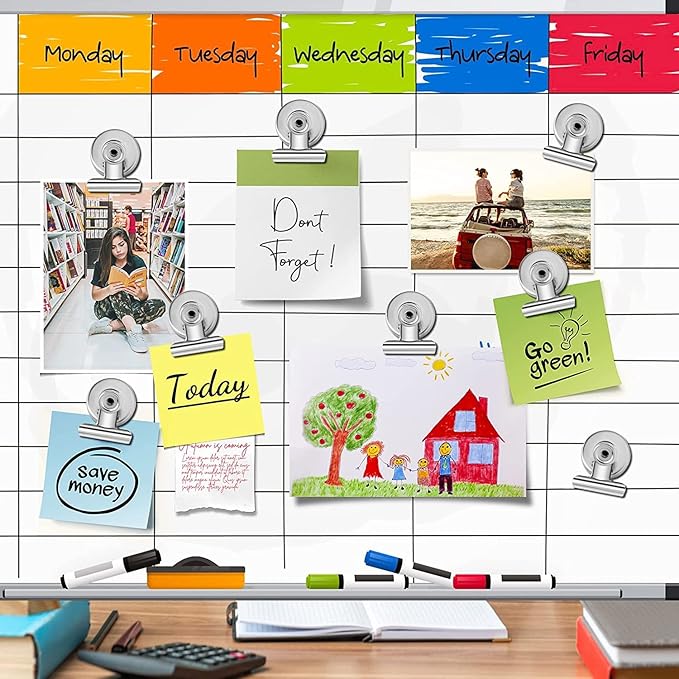 - Scratch-safe design - The heavy-duty magnetic clips feature a scratch-safe design, with smooth and flat metal edges that won't scratch items or surfaces. You can confidently use them on refrigerators, whiteboards, and other surfaces without leaving any marks.