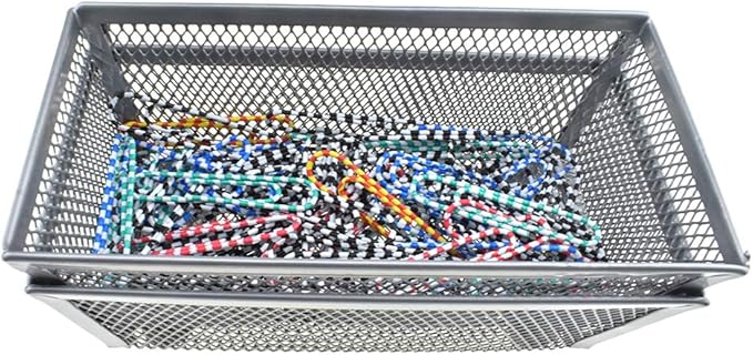 HAHIYO Stackable Mesh Tray Cup 6 x 3 x 2 inches Sturdy Container for Desk Drawer Organizer Collection for Home Office School kitchen Soft Foam Feet No Sharp Edges 2 Pack Silver