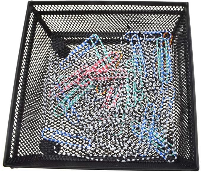 HAHIYO Stackable Mesh Tray Cup 6 x 6 x 2 inches Sturdy Container for Desk Drawer Organizer Collection for Home Office School kitchen Soft Foam Feet No Sharp Edges 2 Pack Black