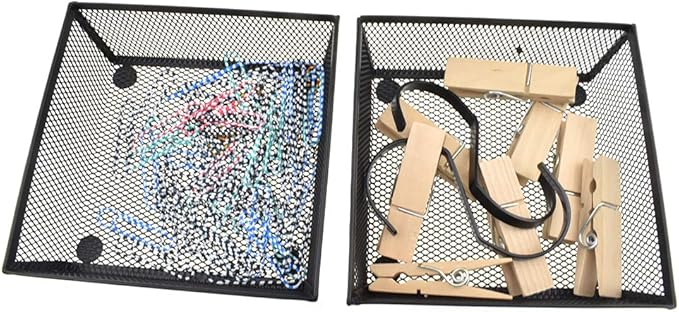 - Great design:Elegant industrial look and sturdy metal construction of a professional design.Its wide-open mouth makes it much easier to grab items when you need it.Two colors make it easier to categorize different sizes and accessories.