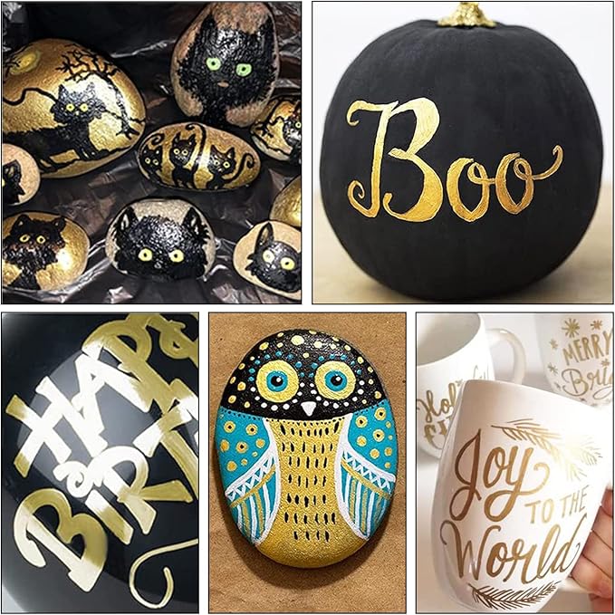 - WORKS ON ALMOST ANY SURFACES: The gold paint pens works on almost any surfaces such as rock, canvas, wood, metal, glass, ceramic, plastic, tire, etc. They are the best tool for creativities