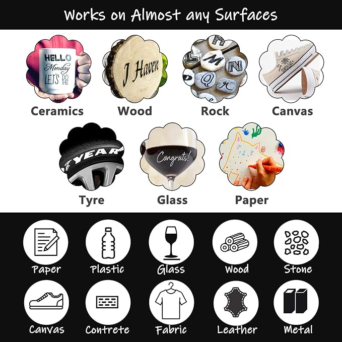 - WORKS ON ALMOST ANY SURFACES: The green paint markers works on almost any surfaces such as rock, canvas, wood, metal, glass, ceramic, plastic, tire, etc. They are the best tool for creativities