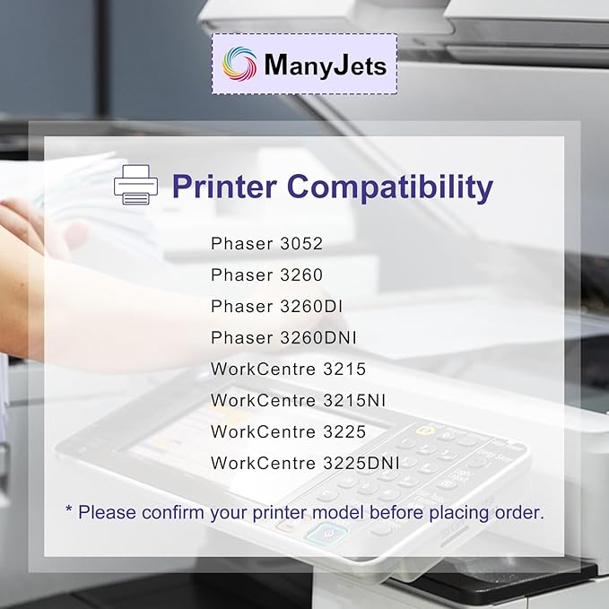 • PRINTER COMPATIBILITY: Compatible for Xerox WorkCentre 3215 toner ,WorkCentre 3215NI, WorkCentre 3225DNI, WorkCentre 3225; Phaser 3260, Phaser 3260DI,Phaser 3260DNI, Phaser 3052 Ink Printer