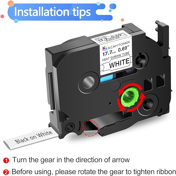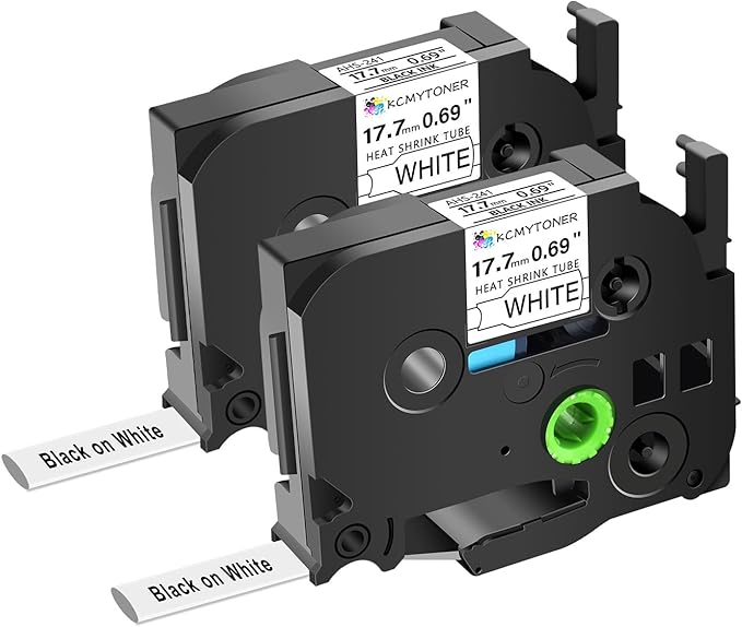 - Package Included: 2 pack KCMYTONER compatible for ptouch HSe-241 HS-241 HSe241 HS241 heat shrink tube label tapes; color: black text on white tape; size: 3/4 inch (17.7mm, flattened width) x 4.92 feet (1.5m).The size indication for this heat-shrink tube label is the width of the flattened tube as a label in a label printer. Do be aware that the size given relates to the label making machine, not the wire. HSe-241 17.7mm tube suits cables ranging from Ξ¦5.4mm to Ξ¦10.6mm in diameter.