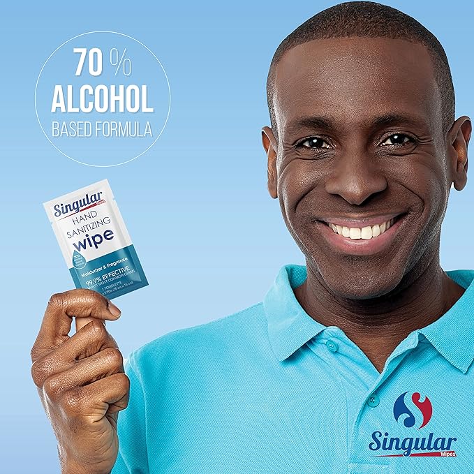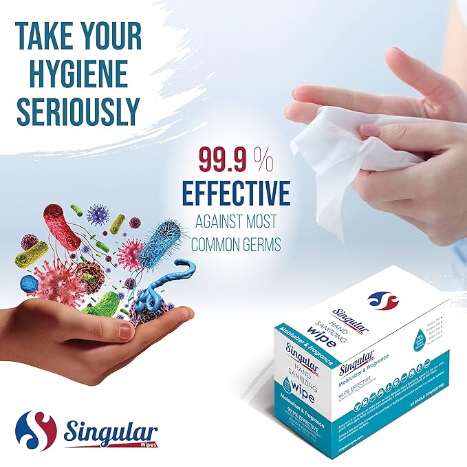 Hand Sanitizing Wipes Travel Size by Singular Wipes – 24ct Individually Wrapped | Fresh Citrus Scent, Moisturizing, 70% Alcohol Wipes | Travel, Office, School, Home | Made in USA