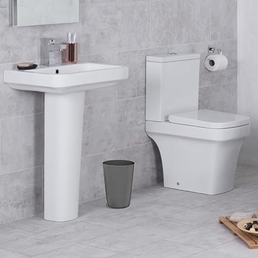 - COMPACT TRASH CAN: The design makes it ideal for small spaces. Perfect for next to toilet, shower, under cabinets, sinks, desks, and other places in need of a small garbage can. The sleek design makes it a perfect office trash can as well