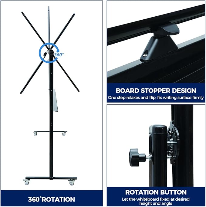 • 360° Reversible Double-Sided Design – Write on both sides of this extra-large magnetic whiteboard, perfect for presentations, brainstorming, or teaching. Flip easily to maximize space!