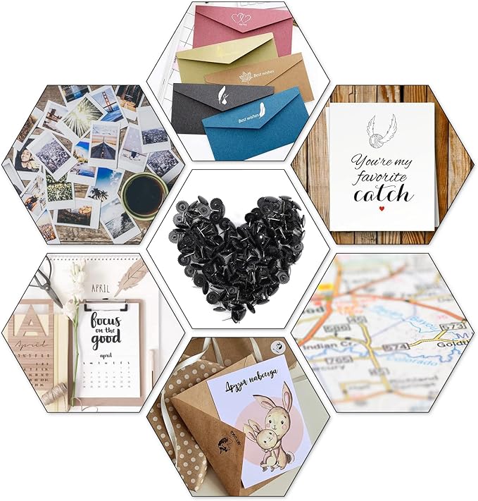 • 1. Premium Flat Push Pins: these black thumbtacks are composed of plastic head and steel point, sharp and durable, which are not easy to bent or broken short, created to stand years of use.