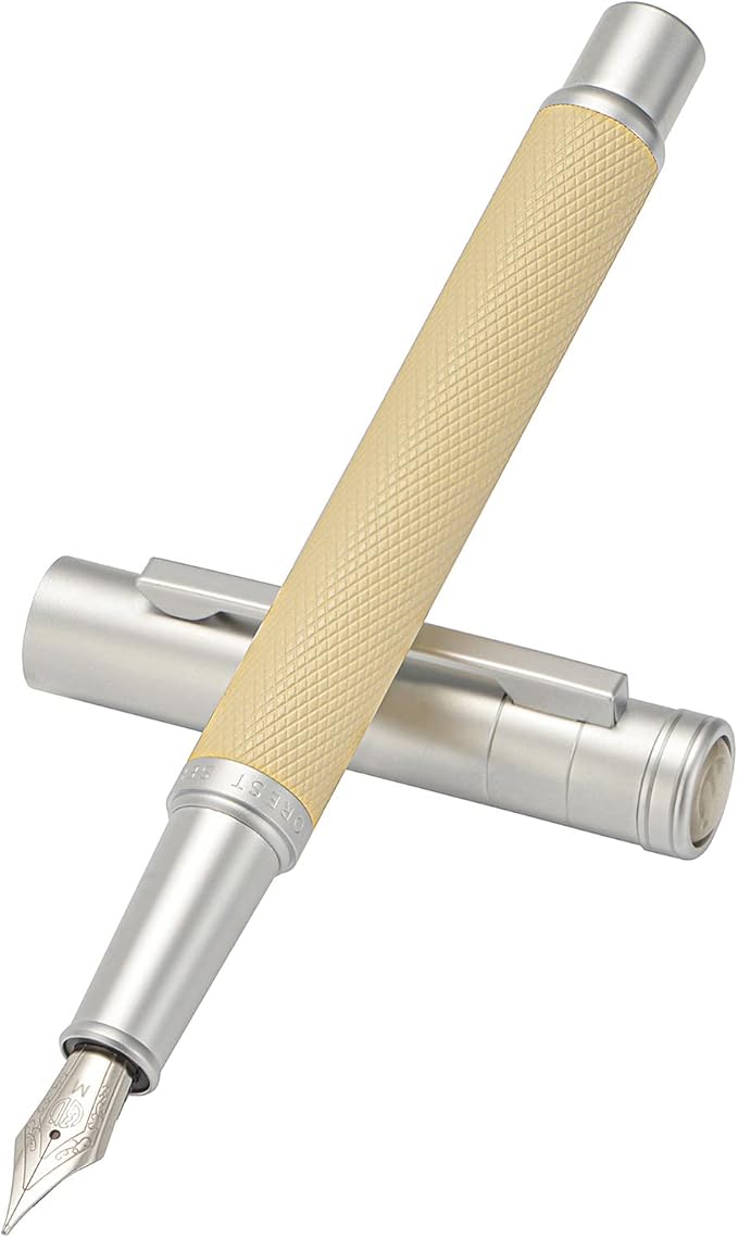 Hongdian Silver Birch Forest Aluminum Fountain Pen Medium Nib with Metal Box Writing Pen Set'1 Count (Pack of 1)