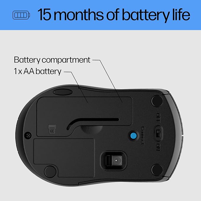 • DEPENDABLE POWER: With up to 15 months of use on a 1 AA battery (3), this HP wireless mouse is designed to push the limits and work as hard as you do