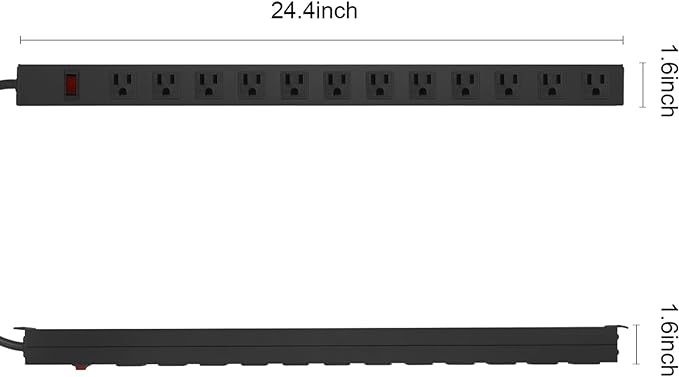 - Wide Spaced Power Strip: 12 wide spaced outlets, the center-to-center distance between AC outlets is about 1.65inch(4.2cm), which is very suitable for large plugs. Connect with 10 ft 14AWG power cord. This long power strip Rating: 15A, 125V, 60Hz, 1875W.