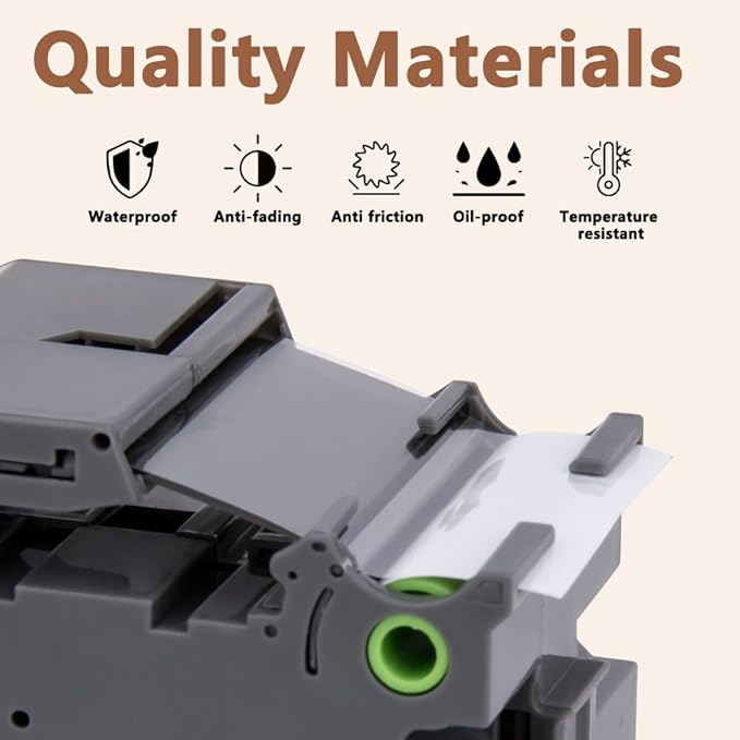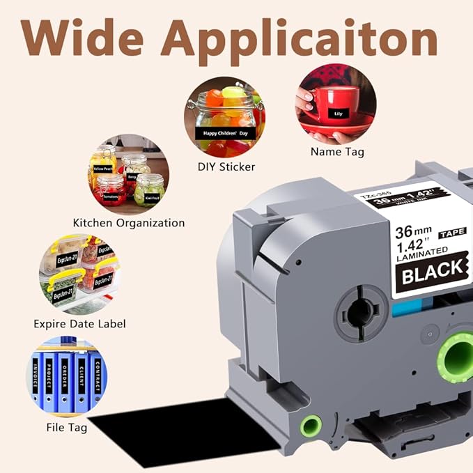 • Wide application: Compatible for Brother P-touch TZe 365 label tape is ideal to print clear, good-looking and durable labels. These labels are great for shelving, kitchen use, cabinets, file folders, USB sticks, food containers, storage boxes, personal possessions, children's school equipment with it's superior adhesive