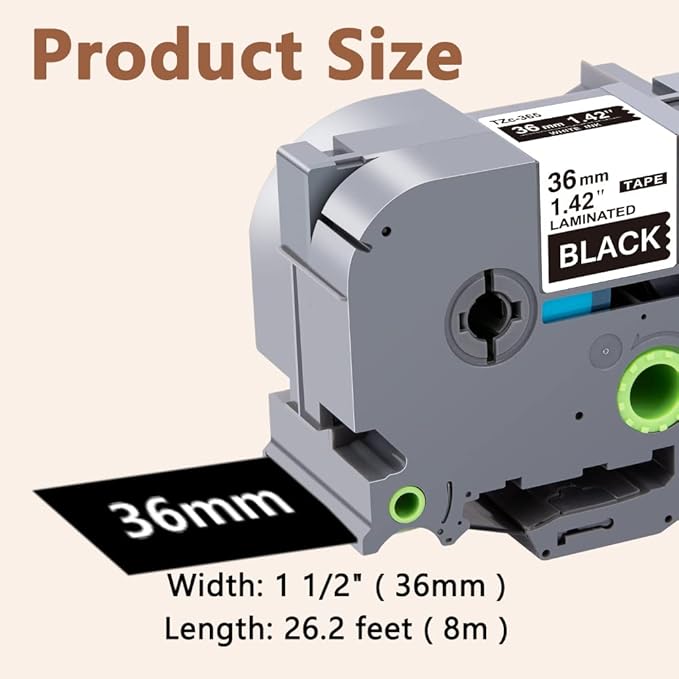 • 36mm tze label tape tze-365 compatible for Brother label maker PT-3600, PT-530, PT-550, PT-9200DX, PT-9200PC, PT-9400, PT-9500PC, PT-9600, PT-9700PC, PT-9800PCN and so on
