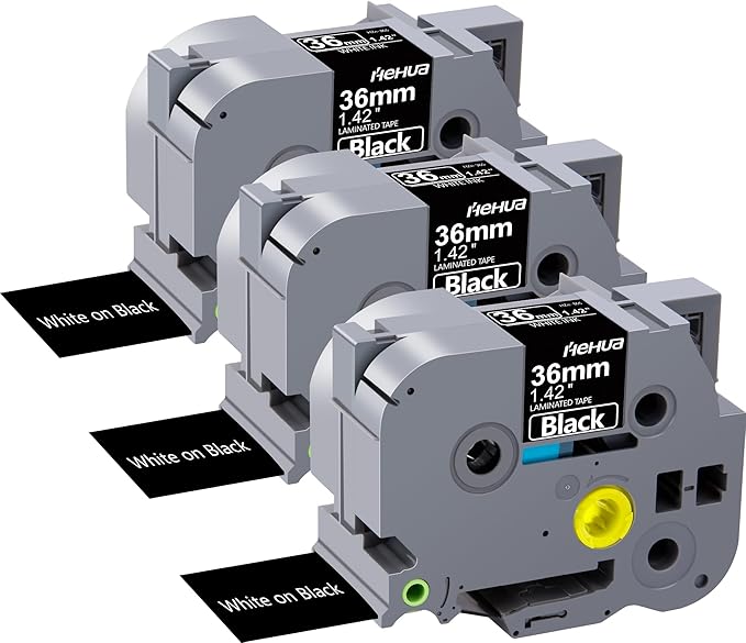 Hehua Tze Tz Tape 36mm 1.4 inch Laminated Black Tape Compatible for Brother P-Touch TZe-365 TZe365 TZ-365 TZ365 Label Tape for Ptouch PT 3600 530, 1.4'' x 26.2ft White on Black, 3 Pack