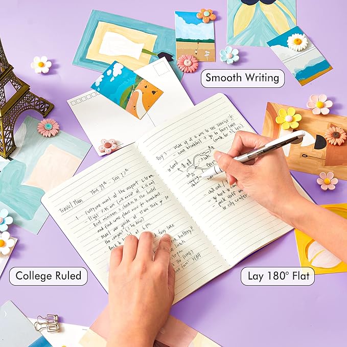 - These travel journals bulk for women have 92 blank lined pages (46 sheets), which would be sufficient for daily usage. The note taking notebooks have a smooth cover, round corners and tight stitching, which are designed to lay 180° flat. Some quick notes can help you remember important dates and find the page you want in a very short time.