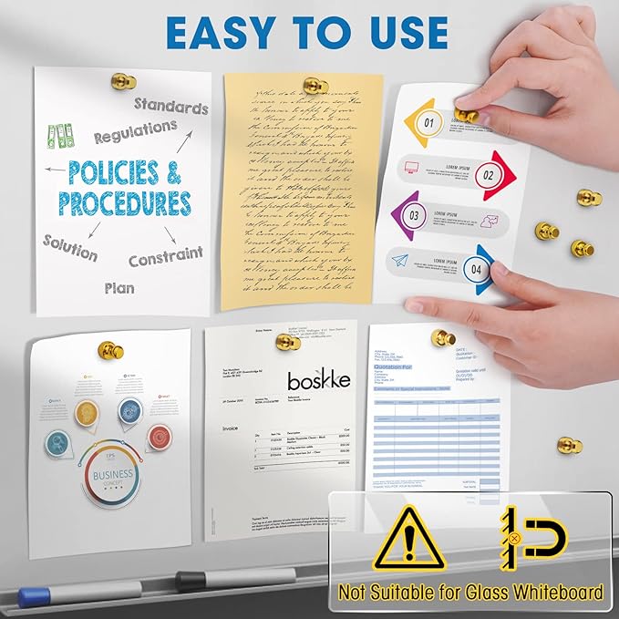 - Versatile and Powerful - These magnetic push pins are highly versatile and offer strong adhesion, securely holding up to 12 sheets of paper or other lightweight items on magnetic surfaces.