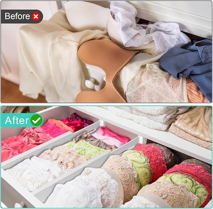 - ARE YOU TIRED OF MESSY & OVERCROWDED DRAWERS? Drawer Dividers are the perfect solution to organize any drawer in your home, from the kitchen to the bedroom. It is remarkable how such a small investment into organizing your drawer space makes a BIG difference allowing each item to have it’s place