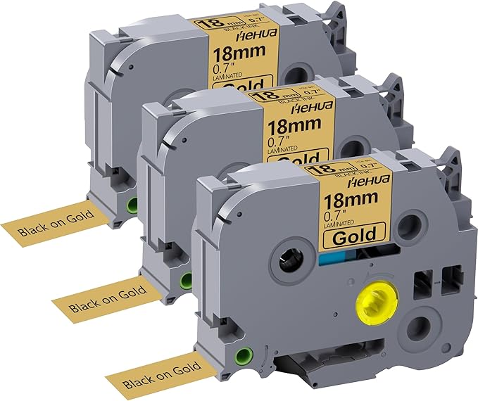 Hehua 18mm 0.7 Black on Gold Laminated Tape Compatible for Brother Label Maker Tape TZe-841 TZe841 TZ-841 TZ841 for P Touch PT D400 D450 D600 D610 P710BT, 3/4'' x 26.2ft, 3 Pack