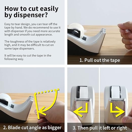 • 【Multipurpose Transparent Tape】The glossy no bubble clear tape. Meets the needs of versatile application, with good holding power and stickness. Safe for use on photo or label also can maintain for a long time. Transparent tape is practically clear on contact, won’t cover the words.