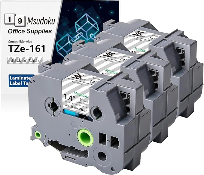 • These compatible for brother label maker tape 36mm TZe-161 TZe161 have strong adhesive and no sticky residue when you remove it. The split back design of ptouch label tape 36mm clear tape is very easy to peel off