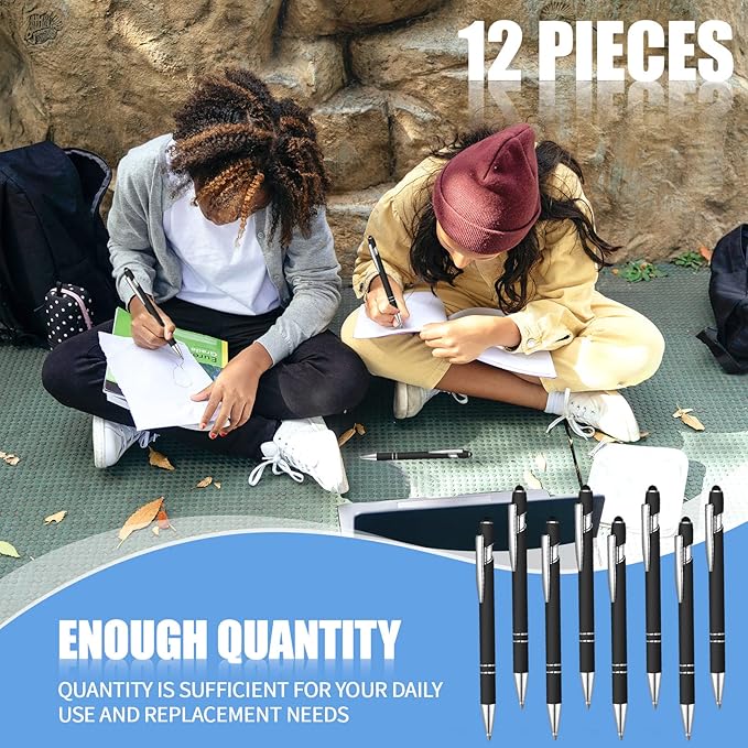 12 Pcs Blue Ink Ballpoint Pen with Stylus Tip, 1.0 mm Metal Pen Stylus Pen for Touch Screens, 2 in 1 Thank You Pen Gift for Friends, Colleagues, Coworker, Office, Family (Black)