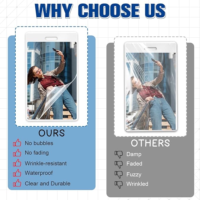 - Transparent with Slotted Hole: Both sides are transparent, the content of the thermal laminate pouch tags kit is clearly visible, The Slot Hole Works with Any Lanyard, Badge Clip, Badge Reel, or ID Holder, no need to punch holes, directly plastic sealed. Make Funny, One of a Kind, Specialty, Unique Gifts or Make with Letter Initial.