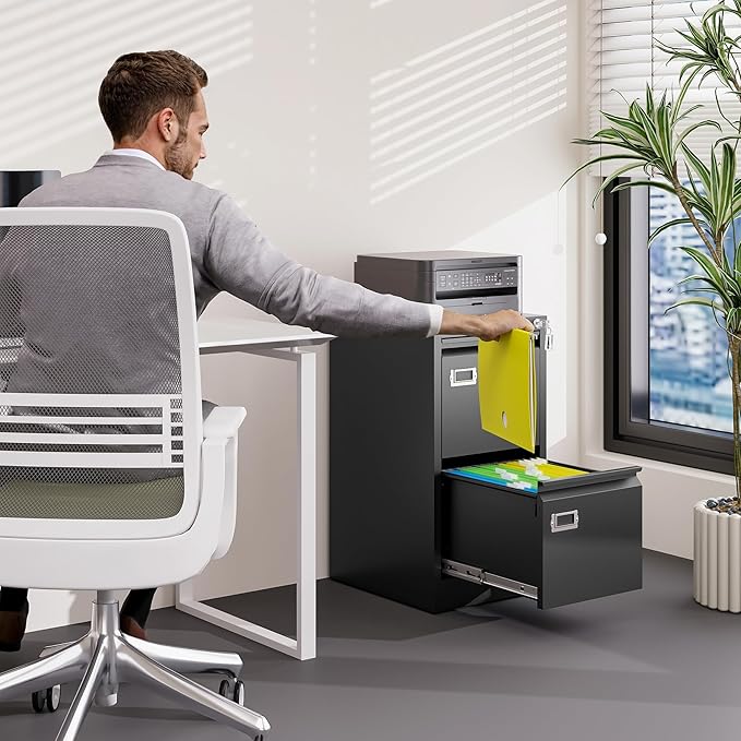 - 【HIGH SECURITY】This file cabinet can lock 2 drawers at the same time with one lock, and is equipped with 2 keys. With an anti-tilting mechanism, when 1drawer is opened, the interlocking system prevents the other drawer from opening, thereby preventing tipping and protecting your safety.