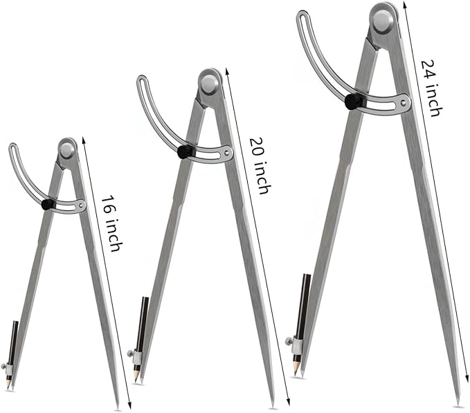 - 【Large size】:Professional All Metal Compass / 16", 20", 24" large size Divider For Woodwork, woodworking, metalworking, leatherworking, math, etc.
