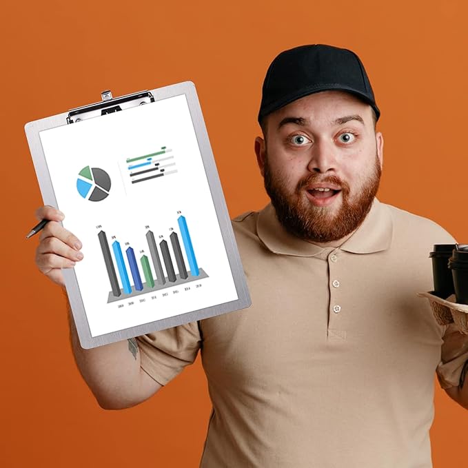 • - Large Capacity Spring Clip: Can hold A4 sized paper and acts as a mini whiteboard(excluding whiteboard pens).