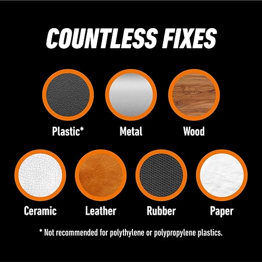 • All purpose glue: Gorilla Super Glue is formulated for virtually all projects and repairs; it bonds glass, plastic*, wood, metal, ceramic, rubber, leather, paper, and more