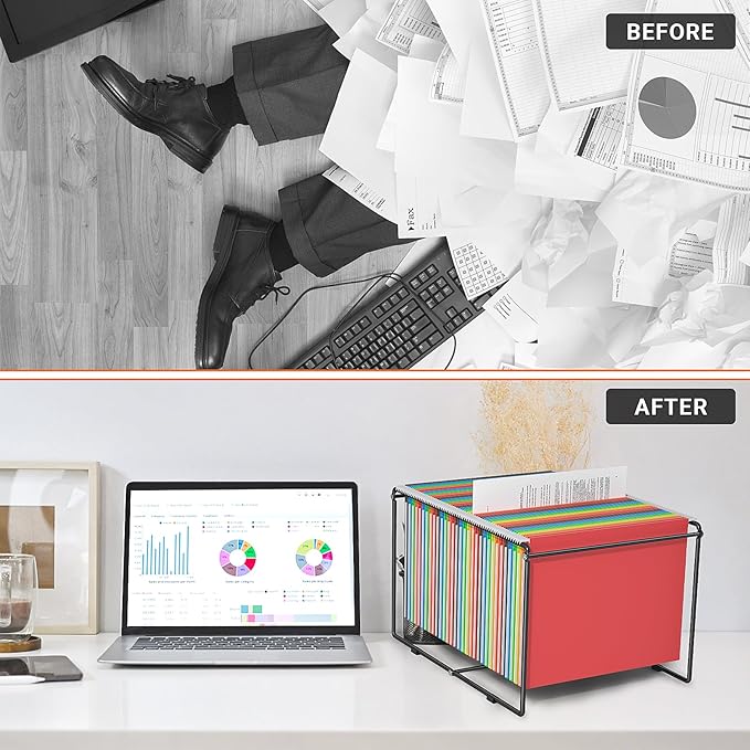 - 【ORGANIZATION】Metal hanging file folder frame, made by diameter 80mm rust-proof baking painting smooth round metal bars and frame,secured by 6 strong screws withstands heavy loads, durable and sturdy enough to hold numbers of hanging file folders.