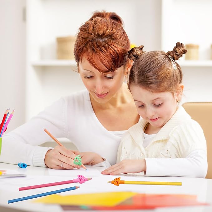- Why Choose This Pencil Grips for Kids Handwriting? - these soft pencil grips for kids handwriting to posture correction. You can put your thumb and index finger into the hole on the side easily, and pass the middle finger through the ring hole. Rich in color, kids will quickly fall in love with this pencil grip.