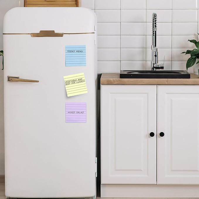 • MATERIAL: lined sticky notes are made of thick paper, which will not easily break, quality adhesive and quality paper ensure sheets stay on any surface without curling, not easily to fall off, and removes cleanly as well.