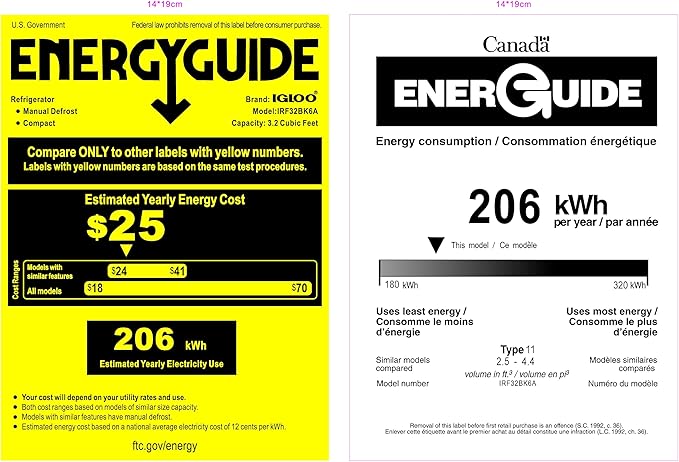 • Refrigerator Cooling Range: 32 – 50 degrees F