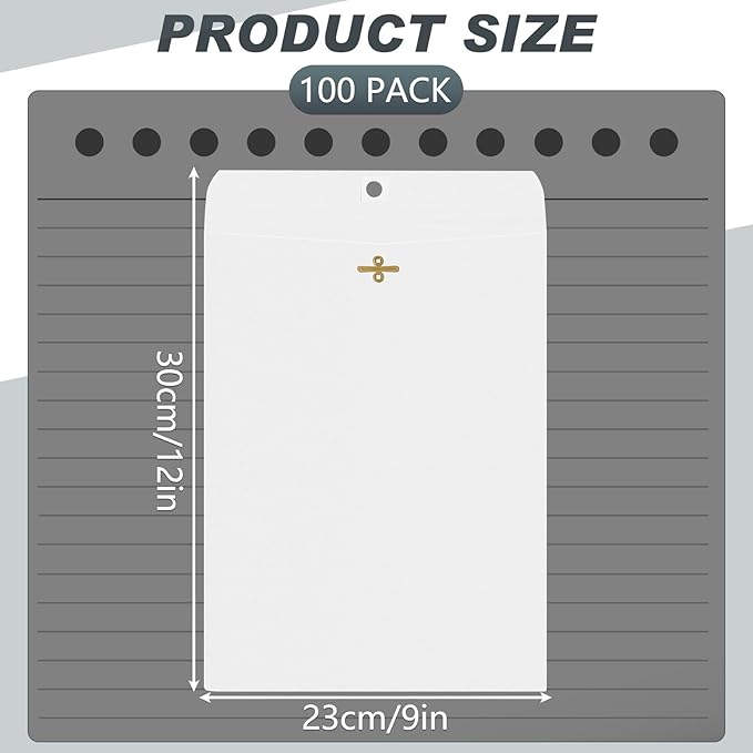 - Sufficient to Apply: the package includes 100 pieces of clasp envelopes, the sufficient quantity can provide you with an ideal solution for storing and organizing various types of documents with ease