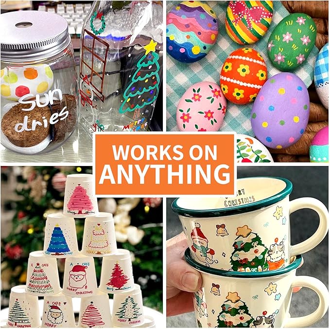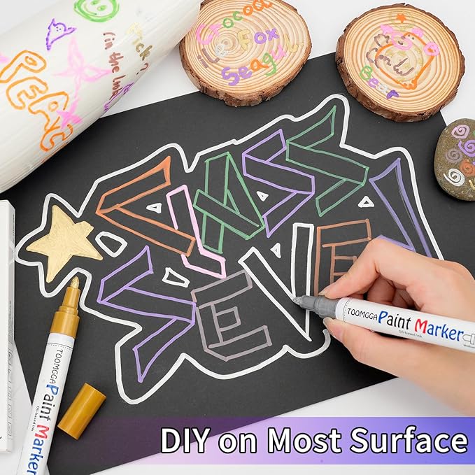 - Quick-Drying: Featuring quick-drying oil-based ink that resists water, fading and abrasion. The oil based paint pens is glossy. For Instant gratification: Get your projects completed in record time with our quick-drying markers, Drying time 45 - 60 seconds