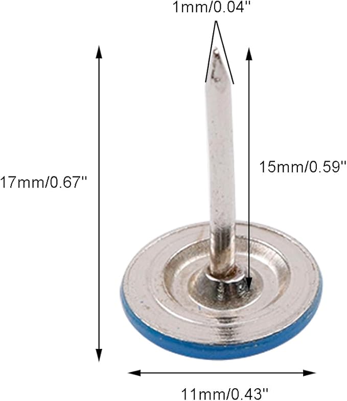 • PACKAGE CONTENT: 100Pcs blue flat head upholstery tacks, enough quantity to meet your daily needs. Total Size:11mm*17mm/ 0.43" * 0.67"(Dia.xH), elegant for furniture decoration
