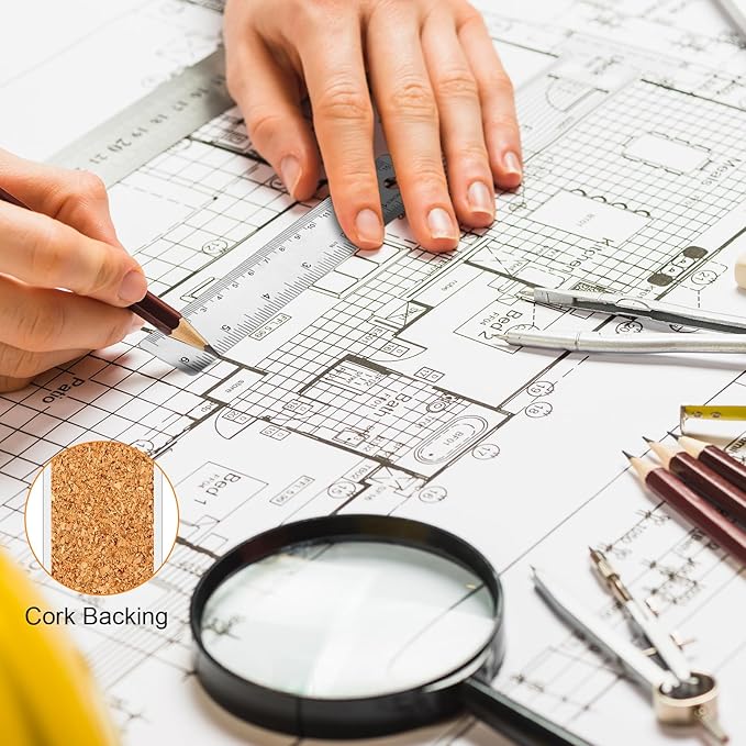 - Widely Used: the metal ruler with cork backing is essential tools for accurate measurements and can be used in classrooms, schools, offices and homes, perfect for students, teachers, designers, architects, engineers and more