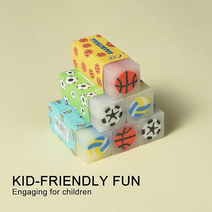 • Score big with our 18Pcs Cute Sports Ball Erasers for Kids Bulk – a slam dunk for young athletes!