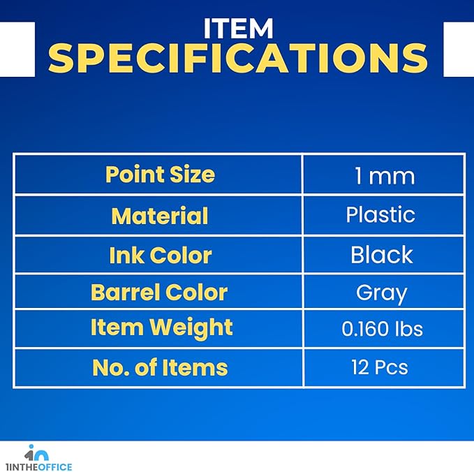 • Medium ballpoint pen comes in a pack of 12, ensuring an ample supply for all your writing needs, whether at home, school, or the office.