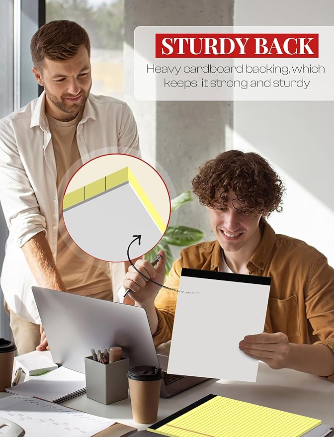 - [KEEP NOTES SECURE]: Each lined notepad 8.5 x 11 has black top bindings. The writing tablets 8.5 x 11 perforated top edge allows for easily and neatly removing individual sheet of paper. Pad of paper 8.5 x 11 has sturdy resistant bindings keep the pages of crucial notes protected, your writing pad won't fall apart under pressure like some lesser notepads. Paper tablets 8-1/2 x 11 features a thick and strong cardboard backing for extra support when writing and thicker than standard legal pads.