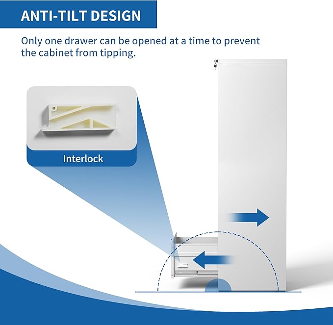 - 【Anti-tilt Design】This 5 drawer metal file cabinet designed with full extension and steel ball-bearing suspension, all drawers of the black vertical 5 drawer file cabinet can be opened and closed quietly and easily. The anti-tilt system ensures that only one drawer can be open at a time, preventing the metal file cabinet from tipping over. You can have peace of mind knowing that your important documents and items are safe and secure.