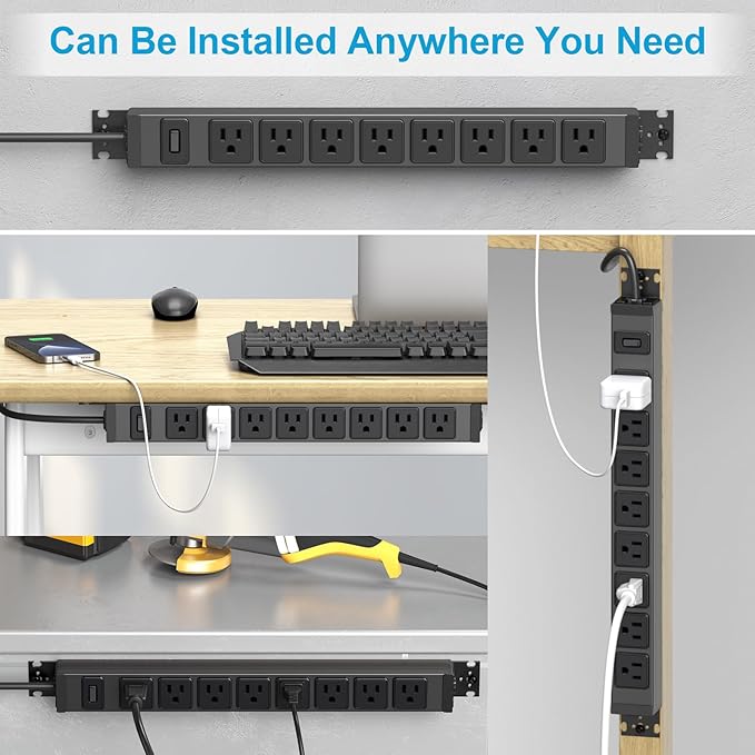- Metal Wide Spaced Power Strip: It has 8 US standard AC outlets, 15A, 125V, 60Hz, 1875W, the distance between center-to-center of AC outlets: 1.57inch, Suitable for large plugs. with screw holes and 4 screws to help mount, great addition to the workbench.